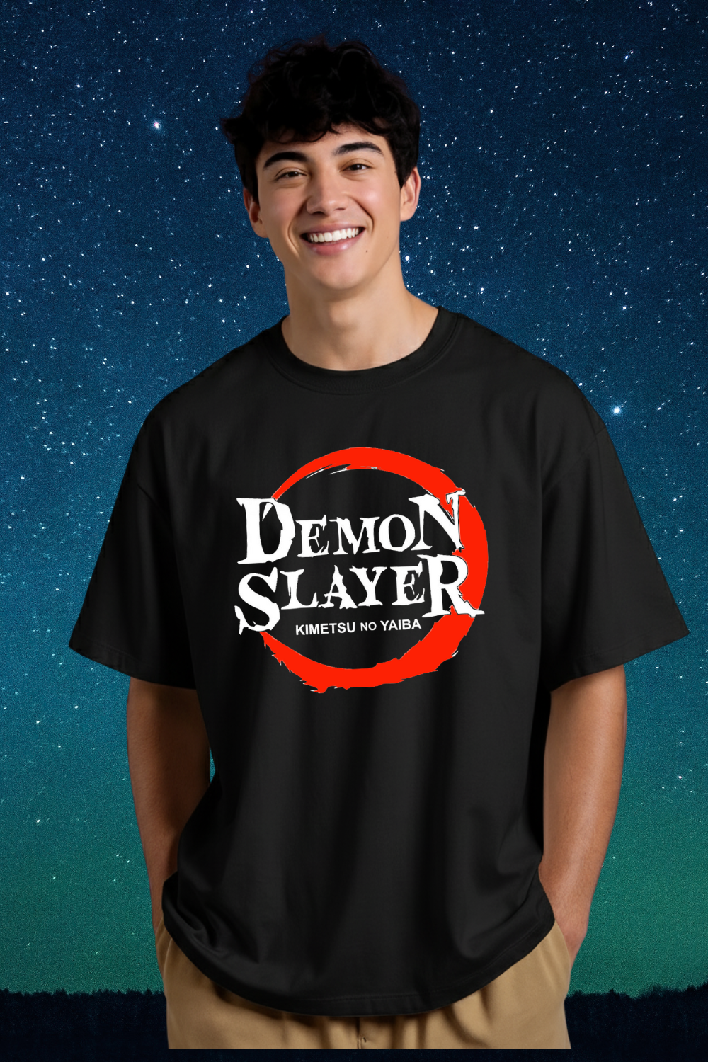Oversized T-shirt 100% Cotton Round Neck Black Demon Slayer